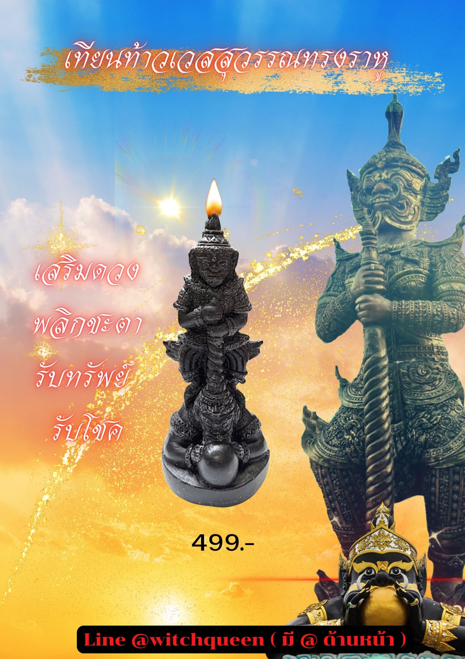 5.เทียนท้างเวสสุวรรณทรงราหู เสริมดวง พลิกชะตา รับทรัพย์ 499.-