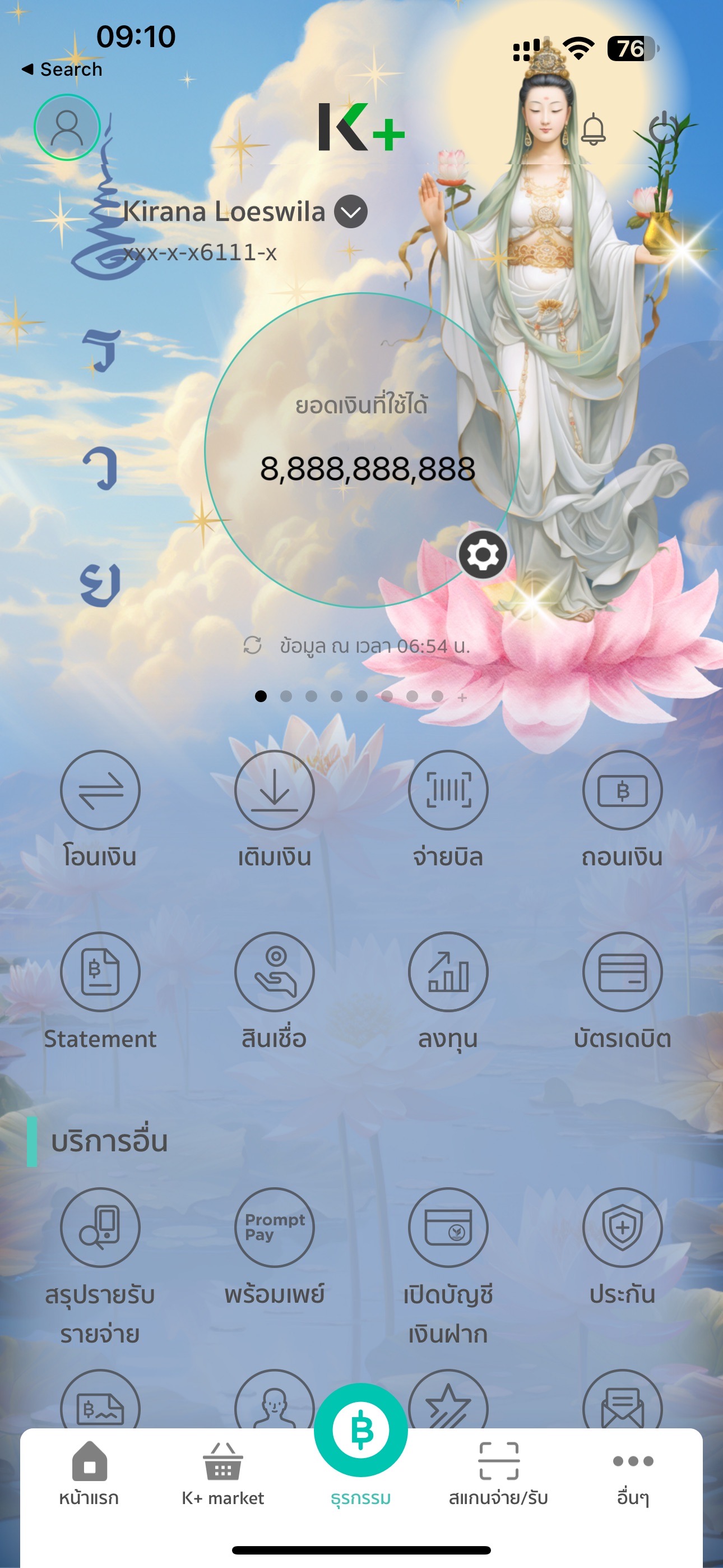 New Guan Yin themed background wallpaper for your banking app. Worship price: 108 Baht.